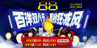 8月8日9点-24点,百洋健康网激情八月疯狂大促,全场满200减80、满300减150元优惠券免费领!优惠券在百洋健康网全场购物满200元/300元即可使用。每人每种券限领取一张。活动力度不错,尤其是满300减150元的优惠券,网站不少商品与其他渠道相当,用券后购买接近5折。