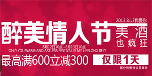 京东商城情人节美酒专场大促,全场四大酒类分区特卖。其中,白酒满600减300元、葡萄酒满300减150元、啤酒满288减60元、洋酒满299减77元,活动时间为8月12日10点至8月13日10点,部分特例、特价商品除外。此次活动的优惠力度不错,特别是白酒和葡萄酒,平日喜欢小酌一杯的朋友可以去看看!