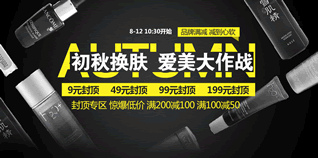 京东商城美妆品牌联合大促,不仅有9元封顶、49元封顶、99元封顶、199元封顶专区,还有满100减50元、满200减100元专区,相当给力!活动参与品牌颇多,如兰蔻、迪奥、阿玛尼、赫莲娜、纪梵希、希思黎、海蓝之谜、雅诗兰黛等。有兴趣的妹纸赶紧去选起来,好价商品往往手慢无。
