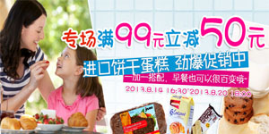 京东商城进口饼干蛋糕劲爆促销ing,至2013年8月20日18点,全场一次性消费满99元可享受减免50元的优惠,满减活动每单仅限参与一次,上不累加。其中,大部分的活动商品均为进行提价,凑单满减后可低至5折,价格优势比较明显;只是参与活动商品数量有限,先抢先得,售完即止。