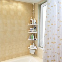 擎天立地式设计,无需安装工具,无需打洞钻孔,轻轻松松就能固定在有上顶的浴室里。充分利用角落空间。加倍呵护您家的墙壁。配置4个三角形置物盘,而且高度也可以根据需要随意调节,单个承重约3kg,能放置更多卫浴用品、杂物哦。附赠3个贴心小挂钩,解决了浴球等的悬挂烦恼。