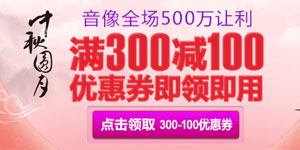 京东商城500万音像返券大让利,从2013年9月16日0点起,可在活动页面免费领取一张满300减100元的音像制品优惠券,优惠券即领即用,数量有限,领完即止!
