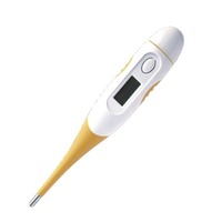 体温计主要以PC 金属材质制成,带有可弯曲电子探头,更柔软舒适;采用电子传感技术,1分钟自动测温;电子读数,测量更,液晶显示屏,读数清晰直观、方便;独特的芯片设计,具备记忆功能,带有声音提示,可自动关闭,小孩使用很方便,物美价廉。