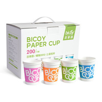 百草园精制上品纸杯200只装,容量245ml,包含玫瑰红、桔黄、苹果绿、钻石蓝4种颜色,色泽鲜丽,美观时尚,适合备在家里接待客人之用。纸杯采用原生260g纯木浆纸+PE防水层的双层设计,耐高温、不渗漏;不做荧光漂白处理、无异味;纸质增厚、好拿好用;柔版印刷,环保墨,不含苯,饮用更安全。