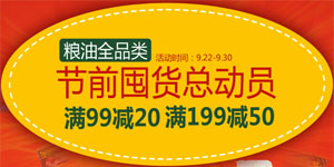 目前,顺丰优选正在进行粮油全品类商品囤货总动员的活动,包含食用油、米面杂粮、南北干货、方便速食、调味品等商品,单笔订单一次性消费满99减20元/满199减50元,还可叠加使用满150-20元优惠券,高可享受满200减70元的优惠,活动持续至2013年9月30日,需要囤货的朋友可以去看看!