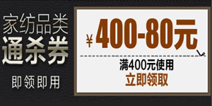 京东商城双十家纺品类大让利-全场底价,可在活动页面领取满400减80元家纺通杀券,优惠券即领即用,每个账户每天可领取1张,有需要的朋友们不可错过哦!
