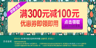 即日起,京东商城音像专场促销,凡京东会员登录账号,即可免费领取音像全场满300-100元优惠券一张。有效期至2013年10月25日。由于此券是音像全场,所以优惠力度还是可以的,尤其是叠加一些满减活动或特价,近期有意入手一些音像制品的朋友可以先去领取。
