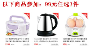 1号店正在进行生活小电器联合特惠的活动,全场商品99元任选3件,实际操作以加入购物车为准。活动涵盖了电吹风、剃须刀、电水壶、煮蛋器等小家电类商品,部分商品参与活动后价格优势明显。