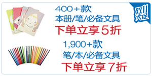 亚马逊办公文具双11专场大促,400款指定文具下单享5折优惠、1900款指定文具下单享7折,活动时间从2013年11月4日-11月11日,仅限亚马逊自营商品参与,只需将选购的商品加入购物车,折扣系统自动结算。