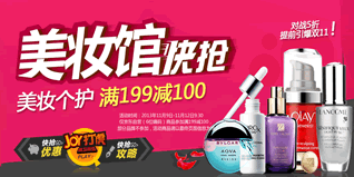 11月9日-11月12日,京东商城提前引爆双11,自营美妆个护满199元立减100元。活动主要包含:会员特惠、进口护肤、彩妆香水、个人护理、男士护理、国妆品牌、店铺精选专区。