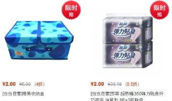 当当网一大波赠品正在靠近,收纳盒/保温杯/拖鞋/卫生巾/化妆包等,低至2元。这不是活动,是当当网的一些赠品在特价销售。很多商品价格都非常好,不介意产品是赠品的朋友可以去选选看。当当网目前省会及重点城市购物满39元免邮,其他地区运费政策稍不一样,具体点此。
