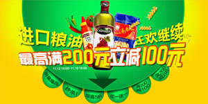 京东商城进口粮油大促持续来袭,即日起至2013年11月18日18点,全场爆品低价、买一送一、惊喜5折、满268减88元活动同时进行,更有专区商品高满200立减100元。活动主要以橄榄油、意大利面、果酱、辣酱、罐头、调味料等品类为主,不少单品都是全网底价,感兴趣的朋友可以去看看。