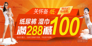苏宁易购大牌纸尿裤&湿巾专场特惠,包含大王、妈咪宝贝、帮宝适、好奇、丽贝乐、飘漾在内的一众品牌,均参与全场购物满288元立减100元的活动。