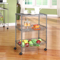 此款收纳架采用碳钢烤乌金材质制成,比其他材质防锈功能更强、表面耐磨,防锈、承重能力强;其尺寸为60*35*75.5CM,外部采用的超强聚脂烤漆,无需工具即可快速安装,还可自由上下调节层网;用户评价其物美价廉,品质佳,放蔬菜、微波炉均可,性价比很高。