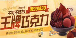 易迅网巧克力全面上新,费列罗、德菲丝、德芙、瑞士莲、好时、明治六大品牌浓情特惠,全场单笔订单消费满99元立减30元,更有心动区商品同时参与。