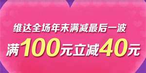 为为网维达纸品年末专场满减促销后一波,全场一次性购物满100元直减40元,本次活动主要有维达超柔韧系列、蓝色经典系列、倍韧系列、花之韵系列和部分湿巾、面纸、手帕纸参与,凑单满减后均是近期好价!