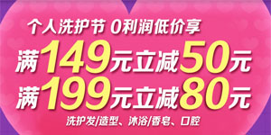 为为网个人洗护节—秋冬保养专场,全场洗护发、造型、口腔、香皂、沐浴类商品一次性消费满149立减50元,满199立减80元。参与活动的包含了沙宣、潘婷、海飞丝、清扬、资生堂、高露洁等一众知名品牌,不少活动单品价格实惠,凑单满减后更是低至全网底价,值得选购!