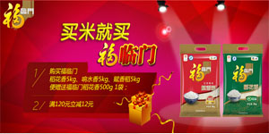 京东商城福临门大米零利大促专场,全场指定商品满120元立减12元,若是购买福临门明星产品5kg装还可获赠500g福临门稻花香米一袋,限时赠送,送完即止!