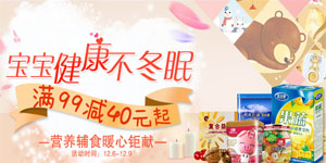 苏宁易购宝宝营养辅食冬季特惠,区单品加入购入车享惊喜价,全元康/宝育堂每满99减40元、方广辅食每满99减20元、首儿每满100减30元,还有推荐超多划算辅食等你选购!