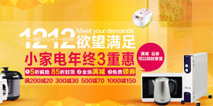 活动专题页面还有云券可以领取,面额分别为满198减10元、满498减20元、满998减50元、满1999元减100元折四种,优惠券的有效期从领取之日起至2013年12月15日,除、团购、虚拟、珠宝首饰类商品外,可购买网站内的其他任何实物商品,主要的是还可与满减活动同时享受,有需要购置小家电的朋友不妨去看看吧!