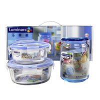 Luminarc弓箭乐美雅钢化玻璃保鲜盒+储物罐3件套 J2476,易迅网武汉仓团购价49元免邮,还可支持货到付款。同套组亚马逊售价81元,当当网第三方卖家报价79元,其他B2C商城低77.85元。