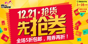 1号店1221团购年终大促即将开幕,全场商品低至5折,食品保健、家居母婴、服饰运动、美妆食品、家电数码、鞋靴箱包等品类商品全网底价开团,买贵赔十倍。