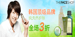 苏宁易购The face shop菲诗小铺美容护肤专场,全场加入购物车3折。活动商品丰富,乳液、BB霜、隔离霜、精华水、滋润霜、洁面乳、面膜等均参加活动。妹纸们可以去选一选。
