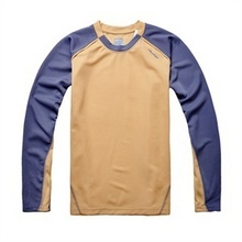 Muztaga男子防紫外线排汗速干长袖T恤MG73029M,与一般T恤大的不同是能防紫外线,并且排汗后可速干。当当现售价79元,满99包邮。同款,亚马逊158,天猫99,淘宝100以上。夏天,男士有一件这样的速干衣,很不错的。