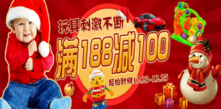 12月23日-25日,苏宁易购圣诞儿童玩具专场促销,全场满188元减100元(满减可累计)。活动分为三个专区:婴幼儿玩具、电动/拼插玩具、绘画DIY玩具。爸爸妈妈们可以去选选看哦!