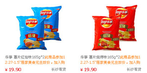 苏宁易购乐事薯片/膨化食品元旦放价大促,全场活动商品加入购物车立享8折优惠。活动商品基本未进行提价,报价与其他商城持平,下单优惠后价格优势明显!