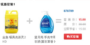 金鱼餐具洗涤灵2kg+蓝月亮薰衣草香手洗专用洗衣液500g/瓶,京东商城优惠套装价15元。同品单是金鱼餐具洗涤灵其他渠道报价就在15元左右,加上洗衣液基本在30元+。