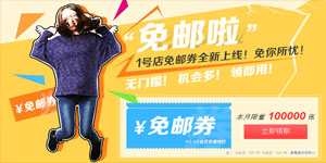 1号店新活动全新上线,于2014年起,V2&V3会员每月均可专享100000张无门槛免邮券,每月1号开放领取,每次领取一张,使用期限为领取后的30天,每月每位用户仅能领取一次。