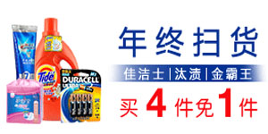 亚马逊家居洁净钜惠月-年终扫货专场,活动期间内购买由亚马逊自营的佳洁士、护舒宝、汰渍、金霸王指定商品满4件时,可输入优惠码:83LANZHI 减免其中价格低的1件商品,即买4免1。活动一直持续至2014年1月30日,由第三方销售的商品不参加此活动,活动优惠不共享。