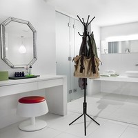 家里人衣帽架落地挂衣架902F,黑色、粉色、白色可选,圆管采用优质金属,高温静电喷涂,承重不变形,金属螺丝组装,稳固不摇晃。产品中段小钩设计,可挂钥匙等诸多小物件,方便使用。尺寸:175*56厘米。