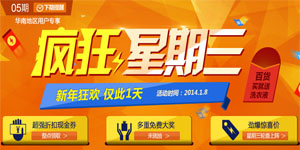 活动仅限2014年01月08日,现金券分为新用户专享满100减10、IT专用满500减30、家电专用满999减100、手机专用满3000减100元四种面额,每个用户每天限领取一张。