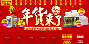 国美在线跨年盛典还在继续,今天开始的是囤年货专场,全品类商品联合大促,家电高直降800元、厨卫生活高减400元、家居家装高省1000元,更有食品百货1折起/低至9.9元,活动时间从2014年1月9日持续至1月15日,正准备备年货的朋友不妨去看看吧!