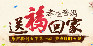 淘宝网 孝心专题活动——孝敬爸妈 送福回家,2014年1月13日-1月17日每天10点、14点、16点、20点,共计20000份康熙御题天下福字,错过了之前两场的朋友可以下午16点开抢!
