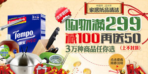 1号店正在进行厨卫家居/纸品清洁新年促销的活动,至2014年1月20日,1号店精选3万种热销商品联合大促,全场低至5折起售,高满299元减100元再送50元现金券。