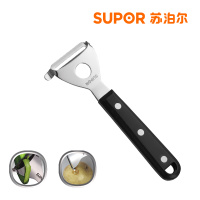 苏泊尔经典系列KG01B1款刨皮刀 采用优质不锈钢刀头,可轻松刨皮,实用更耐用;采用防滑塑胶夹不锈钢手柄设计,经过了精细砂光处理,使用更舒适;其边缘特设锥形结构,挖孔更方便;还设有锯齿刀口和平口刀口,可满足软皮类和硬皮类瓜果蔬菜所需,一举两得!