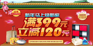 1月26日-25日,京东商城自营家居、家纺、厨具、家具、宠物、箱包联合促销,全场满399元立减120元。活动力度不算特别大,相当于7折,如配合一些特价商品、优惠券使用,优惠力度就更大了。