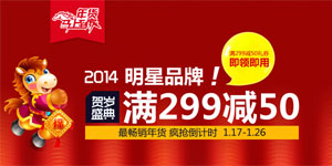 顺丰优选抢年货 省钱攻略第三波——2014年明星品牌贺岁盛典,精选休闲食品、生鲜、酒水、饼干点心四大品类明星商品参与满299减50元的活动,满减活动需先领取现金券方可享受。