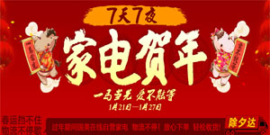 国美在线家电贺年——7天7夜专场大促,电视、冰洗、空调、生活电器、厨房家电、手机数码、电脑办公底价,高直减1200元,部分商品高还可返400元红券。过年期间凡国美自营的家电类商品,物流不停歇,均可送货大家,有需求的朋友可以放心下单!
