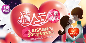 1号店于2014年2月8日——2月14日进行情人节为爱勇敢专场促销的活动,点击活动页面的“马上打KISS”赢取50元现金券,即满319减35元、满150减15元优惠劵各一张,有效期至2月15日。