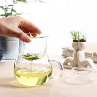 本套茶具采用的高硼硅玻璃制成,高透光率、高强度、高硬度、环保、耐腐蚀、可承受瞬间温差150°,冰冻后装入沸水也完全没有问题;其配有茶隔,冬季泡茶暖手更方便;杯子分为外杯、茶漏、杯盖,茶叶放在茶漏上避免茶渣混入茶内,双层设计时尚环保。