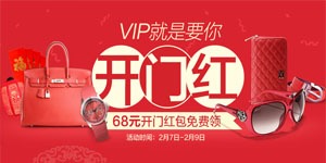 2014年02月7日至2月9日,凡登陆唯品会此活动页面,即可点击领取按钮免费领取价值68元的开门现金红包,即购物满288减28元、满388减40元红包各一个。