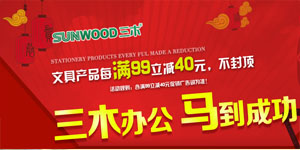 京东商城SUNWOOD三木办公文具专场特惠,至2014年2月17日,全场包含“每满99减40元”广告词的商品均可参与满减的活动,上不封顶。产品主要以削笔机系列、桌面办公、生活办公、文件管理、学生文具这5大品类为主,报价基本与其他同类型商城持平,满减后高可享6折的优惠。