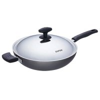 锅身采用的加厚合金基材,传热均匀少油烟;内表面花纹设计,架空食物烹饪,不易粘不易焦;不锈钢锅盖,品质,装袋内厨房;电木手柄采用人体力学设计,不吸水、不导电、耐高温、强度高,易清洗,握感舒适,易于翻炒;高强度磁感应底,适用煤气炉、电磁炉等。