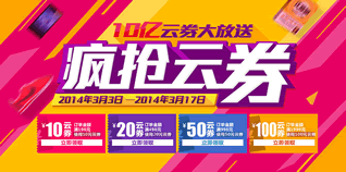 即日起至3月17日,苏宁易购10亿云券大派送,面额和以往一样,分为:满198减10元、满498减20元、满998减50元、满1999减100元。此次领取方式多样化,苏宁易购、苏宁门店以及苏宁手机客户端均可免费领取。