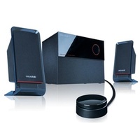 麦博M200十周年纪念版的外观设计比以往的M200更加简约、时尚、深邃,酷炫,箱体采用的是全黑色的设计,仅在卫星音箱和主箱极少部分处采用了红色线条加以点缀,显得庄重沉稳又不是儒雅。时尚元素及半透明材质,引领潮流;人性化的线控设计,让用户用得更加随心所欲。