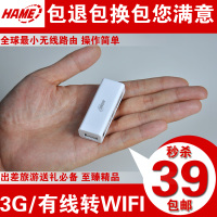 全网小的路由器,4.8分超高用户体验,迷你AP智能切换,3G有线转wifi即插即用,华美销量路由器,高端大气上档次,低调奢华有内涵,属于您的佳选择!卖家承诺坏了不用修,直接给您换新的,三十天无理由包退包换,包您安心包您满意!现华美感恩回馈,亏本,1个ID限购1台!